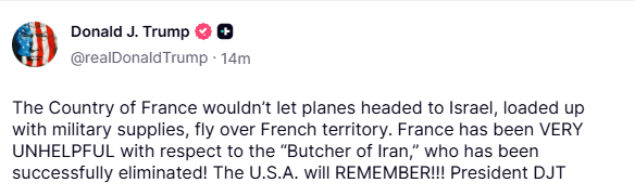 He also had a message for France, whom he has called “very unhelpful”: