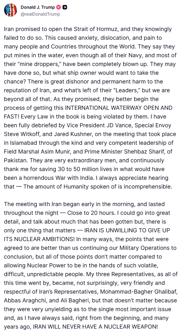 In a follow-up post, he went on to say “IRAN IS UNWILLING TO GIVE UP ITS NUCLEAR AMBITIONS”.